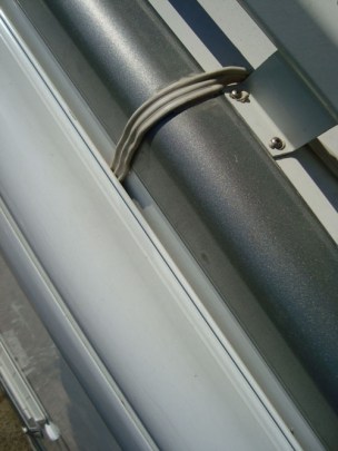 Το καλώδιο όπως περνάει από την οροφή και πίσω από την βάση της τέντας.