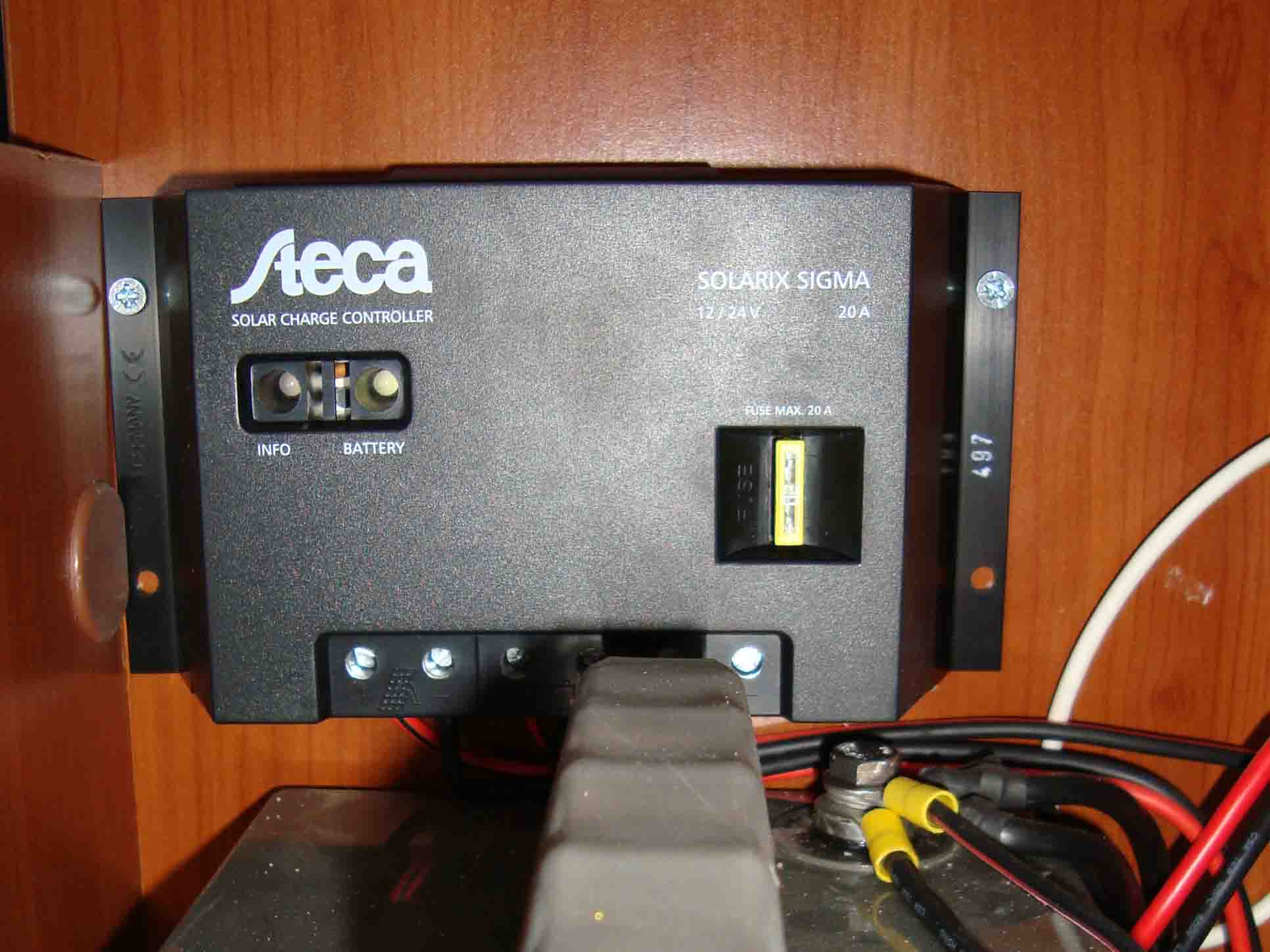 5) Ο ρυθμιστής έχει απλώς δύο led που δείχνουν την κατάσταση (φόρτιση, βλάβη, κλπ). Υπήρχε ο ίδιος με display αρκετά ακριβότερος αλλά δεν μου χρειαζόταν γιατί ο πίνακας του mobilvetta είναι πλήρης και δείχνει τάσεις αναλυτικά).