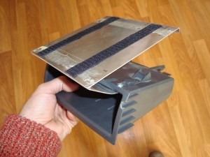 Ένα φίλο αλουμινίου θα ξεκινάει από το επάνω din* που είναι άδειο και θα κάνει μια κούρμπα προς τα πίσω. Επάνω του θα είναι κολλημένο velkro (όπως και στον πάτο του netbook) και τέλος η ιστορία.