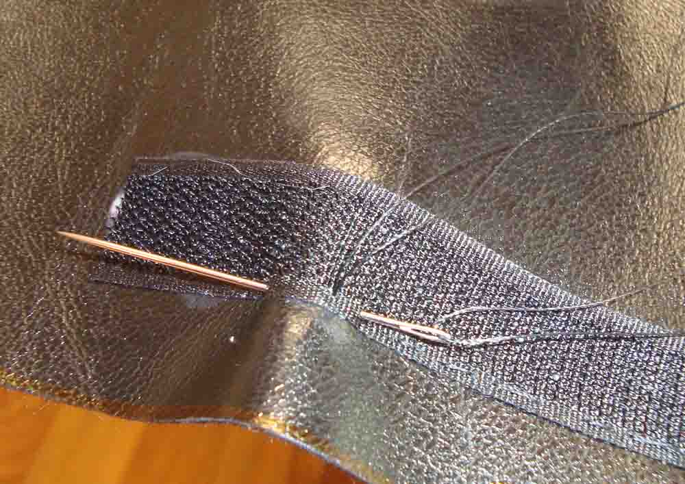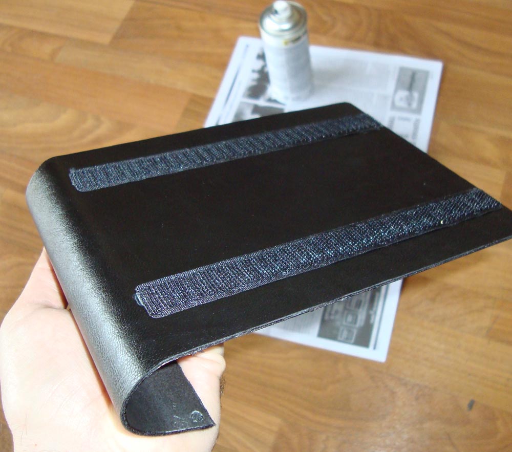 Στη συνέχεια έκοψα πολύ καλής ποιότητας δερματίνη στις ίδιες διαστάσεις και έραψα κάθετα επάνω της δύο σειρές velkro.