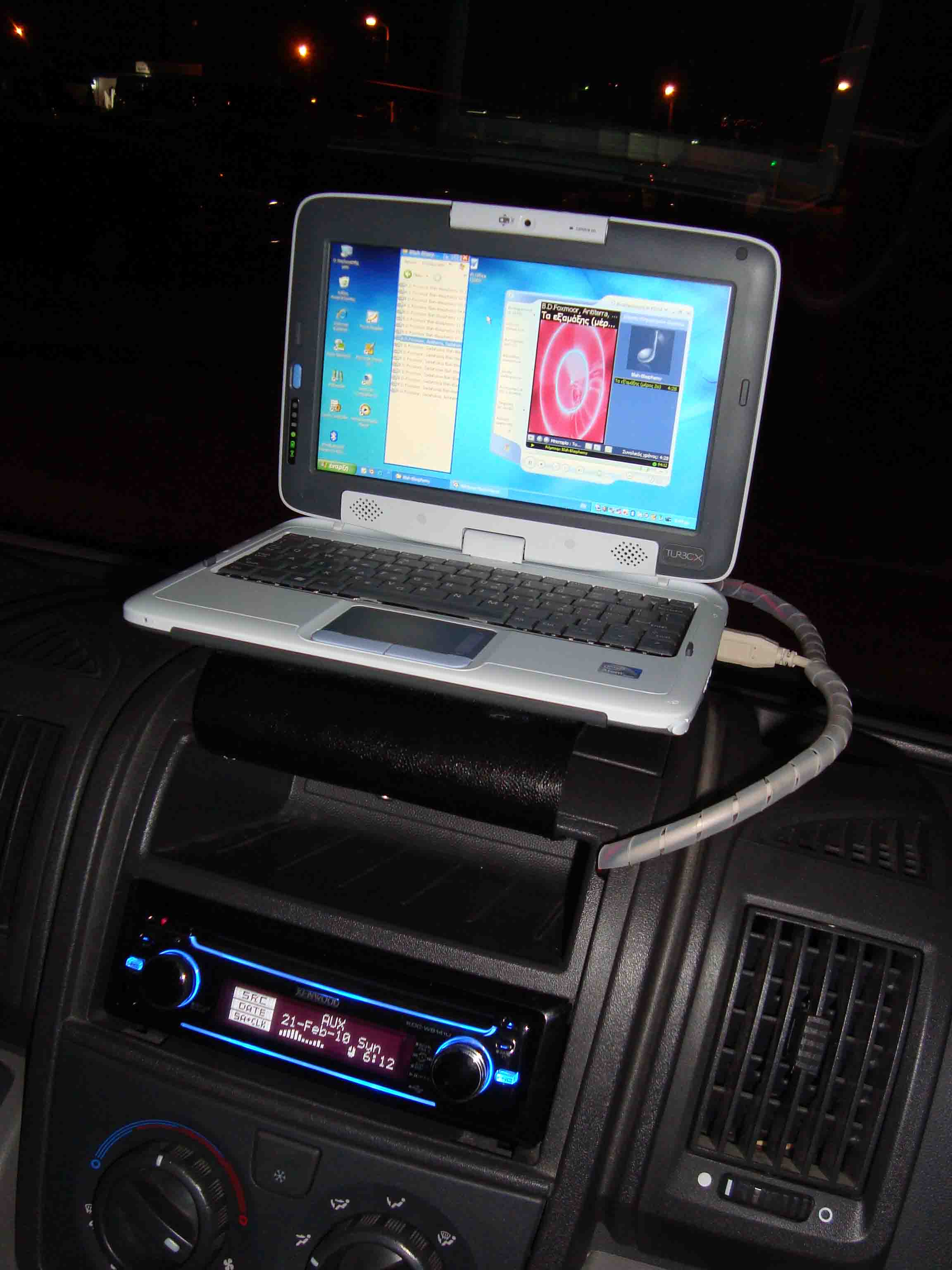Όπως έγραψα και πιο πάνω, επειδή το netbook είναι κατασκευασμένο για σκληρή χρήση δε χρειάζεται ιδιαίτερη κατασκευή για να κάτσει στο ταμπλό. Παρά ταύτα, η εφαρμογή έγινε με τέτοιο τρόπο ώστε να έχει μια ελαστικότητα για τις πολύ δύσκολες καταστάσεις. Η λύση αυτή δόθηκε μετά από συζήτηση που έκανα με ένα κομπιουτερά γνωστό μου που με τρόμαξε.