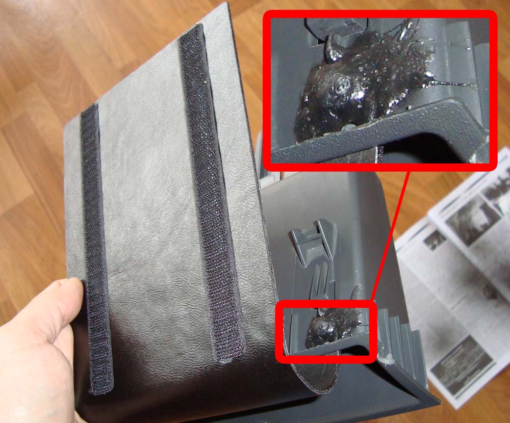 Μετά κόλλησα τη δερματίνη με βενζινόκολλα και από κάτω έβαψα με μαύρο σπρέι ¨φωτιάς¨.