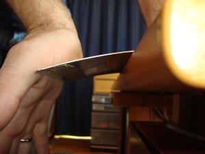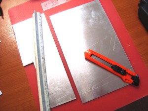 Το φύλο αλουμινίου το κόβω με ξυράφι (χαράζω και τσακίζω).
