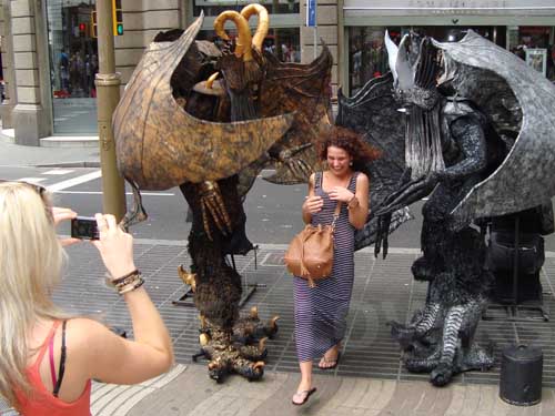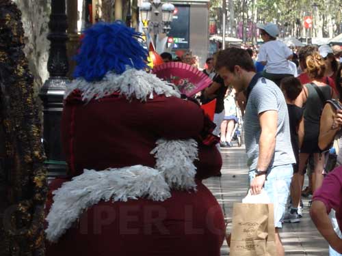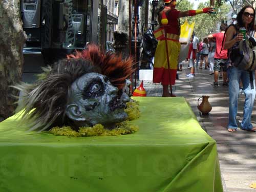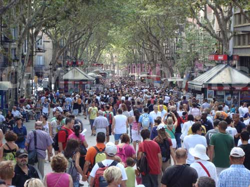 Αυτή είναι μια μικρή ιδέα του τι γίνεται κατεβαίνοντας τη Rambla (σημαίνει ποτάμι, κατά μια έννοια) de Santa Monica  (http://en.wikipedia.org/wiki/La_Rambla,_Barcelona) που θα μας πάει κατευθείαν στο ενυδρείο μέσο της Rambla de Mar (είναι η προέκταση της Rambla de Santa Monica μέσα στη θάλασσα). Πρόκειται για έναν από πιο πολυσύχναστους πεζόδρομους της Ευρώπης.