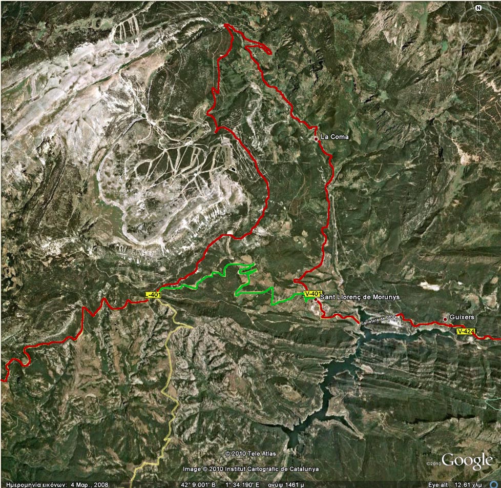15:55 Είμαστε ¨κολλημένοι¨ σε μια διασταύρωση πάνω στο βουνό, πάνω από το St Llorenç de Morunys, όπου υπάρχει σοβαρή κόντρα για το προς τα που θα  πάμε. Άλλα λένε οι χάρτες, άλλα τα GPS και άλλα το ένστικτο. Μέχρι τώρα μας πάει το Destinator αλλά υπάρχει σοβαρή υποψία ότι μας πάει ¨για τα μπάνια¨.