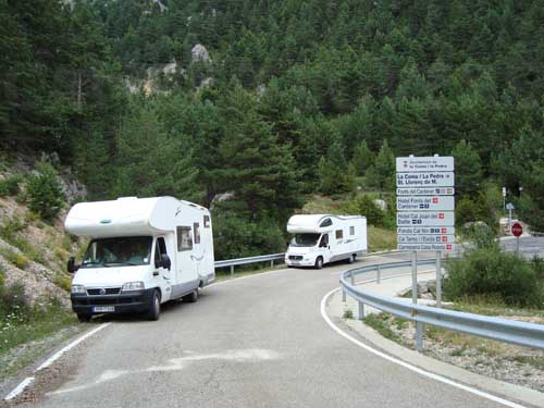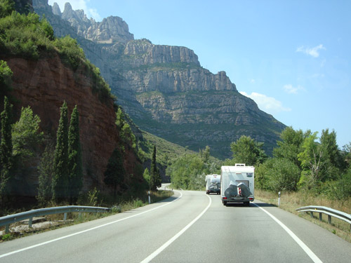 17:05 Είμαστε σταματημένοι έξω από τη Manresa  και έχουν έρθει τα ¨παιδιά¨. Μετά τα καλωσορίσματα μπαίνω (δε κρατιέμαι με τίποτα) να δω σε τι κατάσταση είναι από μέσα το νοικιασμένο. Το έχουν πάρει από την EuroMotorhome, είναι ένα Rimor Katamarano, δύο – τριών χρόνων και είναι σε άθλια κατάσταση. Σπασμένα τραπέζια, καναπέδες, πόρτες και πορτάκια, ότι κινείται είναι ξεχαρβαλωμένο, τα υπόλοιπα είναι απλώς γδαρμένα. Η θέρμανση δε δουλεύει, αλλά και να δούλευε εγώ τουλάχιστον δε το ανάβω αυτό το πράγμα γιατί δεν είναι ασφαλές. Η συσκευή (Truma), είναι σπασμένη και όταν πήγα να τη ρίξω μια ματιά, μου έμειναν κάτι πλαστικά στο χέρι. Το πρόβλημα είναι ότι στα βουνά που πάμε θα τη χρειαστούνε οπωσδήποτε και αυτό ίσως γίνει ένα από τα μεγάλα προβλήματα στη διάρκεια. Ακόμη (ναι έχει και άλλα), είναι βρώμικο και χρεώσανε πολλά extra, όπως το air-condition της καμπίνας, τα σεντόνια – σλίπινγκ μπαγκ!, τα εργαλεία κουζίνας!, κλπ, κλπ, με αποτέλεσμα να του βγει… Τα σεντόνια για παράδειγμα πληρώθηκαν 150Ε. Με αυτά τα χρήματα μπορεί κανείς να τα αγοράσει καινούρια και να τα στείλει με κούριερ στην Ελλάδα! Επίσης, η παράδοση – παρουσίαση έγινε στα Ισπανικά επειδή κανείς δε μιλούσε άλλη γλώσσα! Κρίμα που δεν έχω φωτογραφίες να σας δείξω, δε μ΄ έκοψε.