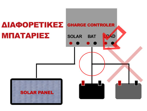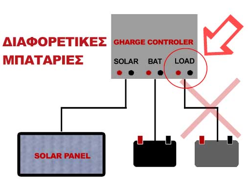 Βρηκα φορτηστη για 2 μπαταριες! Εχει δηλαδη μια εισοδο για το πανελ, και αλλες 2 για τις μπαταριες, ενω δεν δινει ρευμα χρησης 12 βολτ σταθερο.
