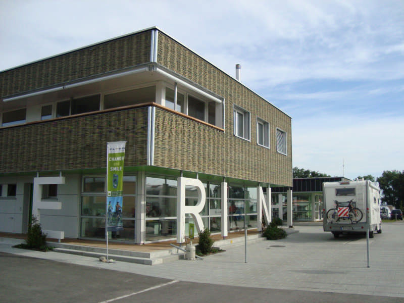 Camping Buchhorn. Απέχει μόλις ένα χιλιόμετρο από το κέντρο και θα πηγαινοερχόμαστε με τα ποδήλατα.