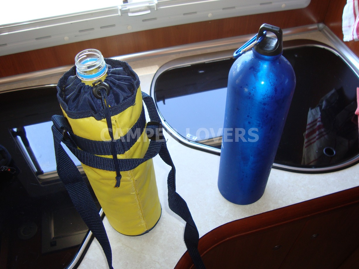 - Νερό βρύσης (φίλτρο). Το βάζουμε σε μεταλλικό δοχείο (όχι θερμός) και στο ψυγείο. Το ίδιο κάνουμε με νερό που αγοράζουμε σε πλαστικό μπουκάλι που δεν είναι κρύο. Το πλαστικό μπουκάλι ¨γονατίζει¨ το ψυγείο αφού κάνει περίπου 4 φορές περισσότερο χρόνο για να κρυώσει. Τα κρύα νερά που πίνουμε στο ταξίδι, τα βάζουμε μέσα σε icebox για να ¨κρατήσουν¨ (φωτογραφία).