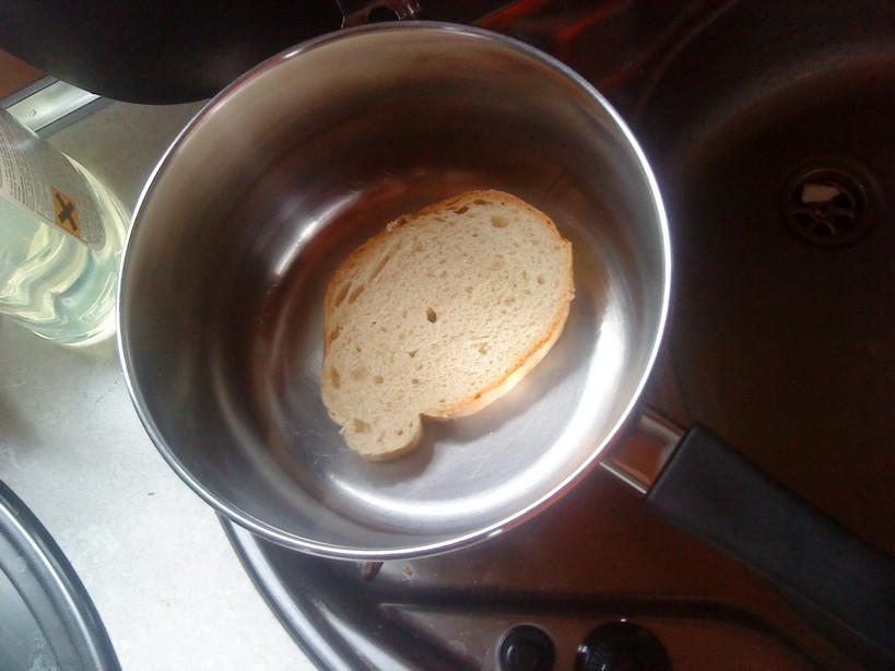 Το ίδιο μπορείτε να κάνετε και για να φρυγανίσετε το μπαγιάτικο ψωμί, αφού βαριόσασταν να πάτε για φρέσκο. Ρίχτε το στον πάτο από το κατσαρολάκι και αν ρίξετε και λίγο ελαιόλαδο και ρίγανη θα σας φυλάνε τα χέρια. Εναλλακτικά, μπορείτε να το κόψετε σε κύβους και να το σοτάρετε μέχρι να γίνει τραγανό (κρουτόν). Φτιάξτε και έναν τραχανά μαζί και πάρτε τα ρέστα. Γενικά όμως, να θυμόσαστε ότι το τηγάνι θέλει προσοχή, γιατί εύκολα μπορεί κανείς να ¨σκοτώσει¨ το φαγητό του.