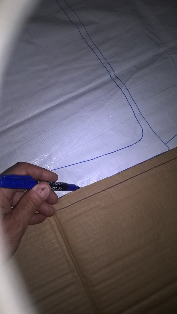 - Έβγαλα πατρόν από τα παράθυρα επάνω στο χαρτόνια αφήνοντας περιθώριο 2 εκατοστά για το ράψιμο.