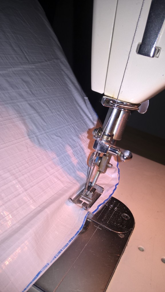 - Επειδή είχε και λίγο πειραματικό χαρακτήρα η κατασκευή, χρησιμοποίησα nylon κήπου (το χρησιμοποιούν σε γεωργικές εργασίες, κλπ), γαζώνεται με απλή μηχανή και είναι φτηνό και γερό.