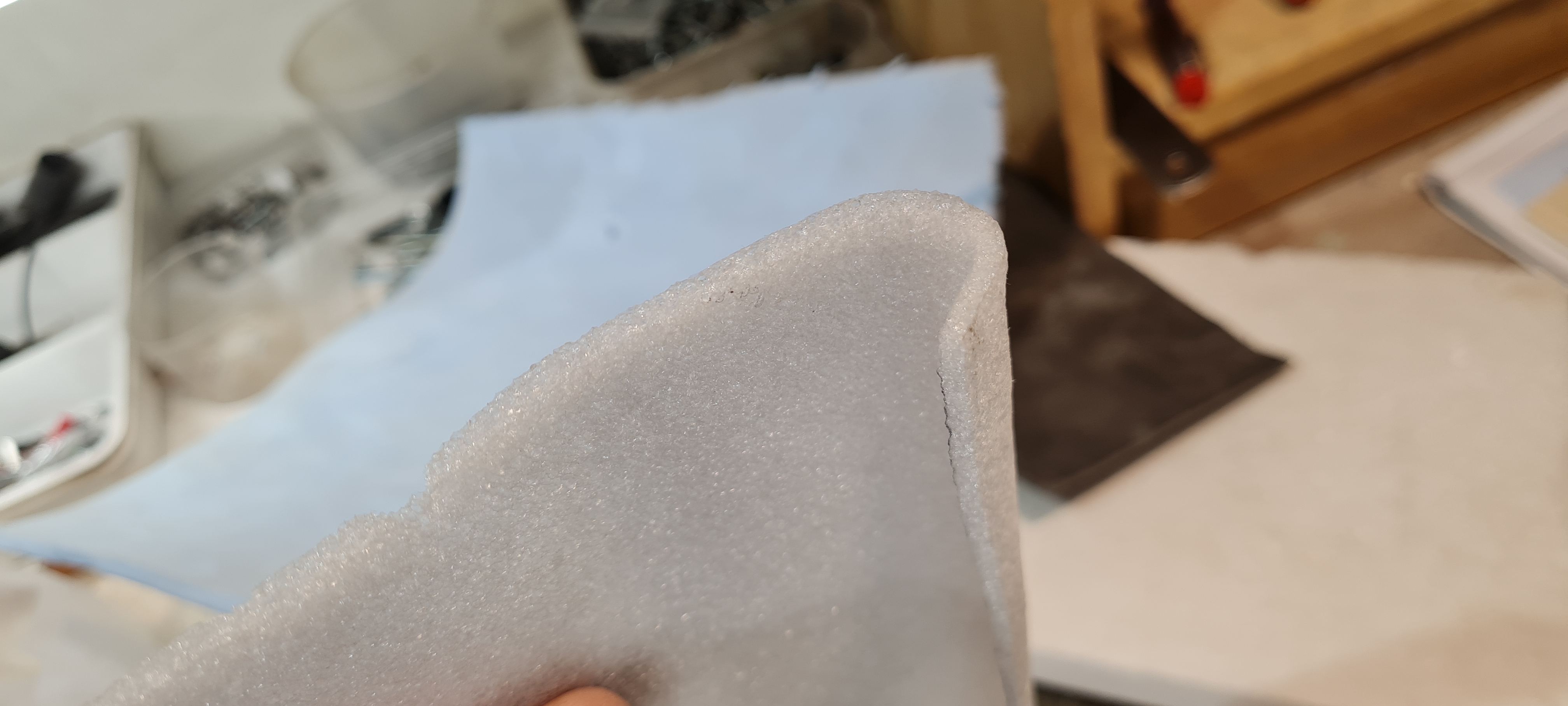 Εδώ μιλάμε για ένα υλικό που έπεσα τυχαία επάνω του από λάθος μια πωλήτριας σε τεχνικό κατάστημα όταν της έδειξα ένα κομμάτι Armaflex 3χιλ. που είχα μαζί μου. Η πωλήτρια νόμιζε ότι ήταν υπόστρωμα δαπέδου για Laminate σε μαύρο χρώμα και μου είπε, με άνεση, ότι έχουν πολύ μεγάλες ποσότητες και στην καλύτερη τιμή της αγοράς. Όταν μου έφερε το ρολό κατάλαβα την παρανόηση. Ψάχνοντας λίγο περισσότερο βρήκα ότι ο αφρός συσκευασίας φαίνεται να είναι ίδιο υλικό με το υπόστρωμα και επειδή πουλιέται σε μικρότερες ποσότητες τον προτίμησα. Τον χρησιμοποίησα στα δύσκολα σημεία και μετά, ως φράγμα υδρατμών πίσω από τα ξύλα.