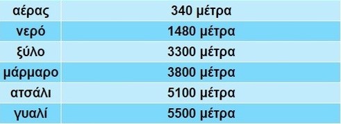 Ταχύτητα του ήχου/δευτερόλεπτο σε: