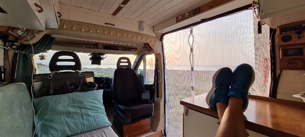 Εγώ, εν τω μεταξύ, εγώ έχω περάσει σχεδόν 16 μήνες στο εργαστήριο μετατρέποντας ένα βανάκι σε αυτοκινούμενο τροχόσπιτο. Για να μπορέσω να το έχω ΑΠΟΛΥΤΩΣ έτοιμο, ώστε να μην καταλήξει το ταξίδι τραγωδία, έχω ¨ματώσει¨.
