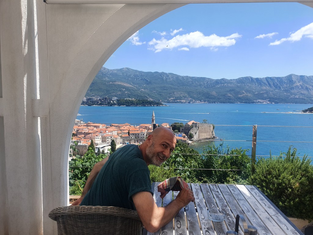 Δεν ξέρω πως το κάναμε αυτό, αλλά τελικά, αντί εγώ να καταλήξω στο νοσοκομείο γδαρμένος και η Κική να γυρίσει Ελλάδα με τα πόδια, βρεθήκαμε να πίνουμε το καφεδάκι μας σε ένα όμορφο και ήσυχο καφέ πάνω από την παλιά πόλη της Μπούντβα, γελώντας με τα χάλια μας!