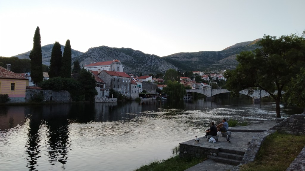 Σύντομα, περνάμε τα σύνορα για Βοσνία – Ερζεγοβίνη, απολαμβάνουμε και πάλι την υπέροχη φύση στα ορεινά με ανθρώπινες θερμοκρασίες και καταλήγουμε να βολτάρουμε στο υπέροχο Τρεμπίνιε.