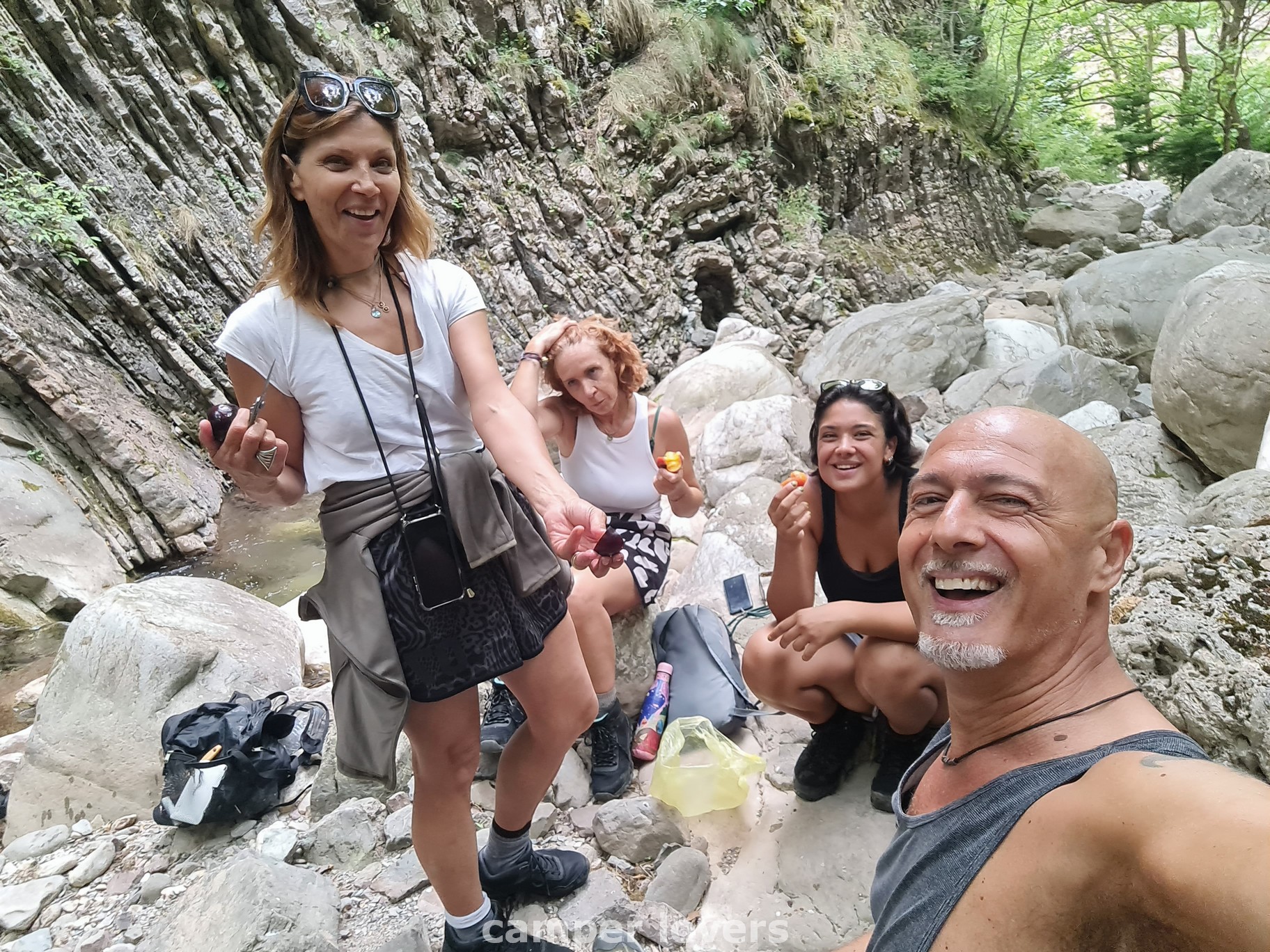 Και αφού μαζί με όλα τα άλλα έχω στραμπουλήξει και το πόδι μου, Και αφού έχει περάσει πάνω από μία ώρα, και γνωρίζουμε πια με σιγουριά ότι το μισαωράκι διαδρομής που μας είχαν περιγράψει δεν έχει καμία σχέση με την πραγματικότητα, και αφού οι κοιλιές μας ακούγονται μέχρι τα Τρίκαλα, είπαμε να κάνουμε ένα διάλειμμα για να τσιμπήσουμε κάτι!
