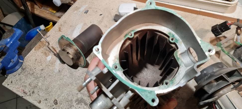 Η δεύτερη διαπίστωση ήταν ότι η εξάτμιση δεν είχε το αναμενόμενο ¨πουρί¨ (συγκεντρωμένα κατάλοιπα καύσης) και μου δημιούργησε ελπίδες ότι και μέσα ο θάλαμος καύσης θα ήταν αντίστοιχα καθαρός.