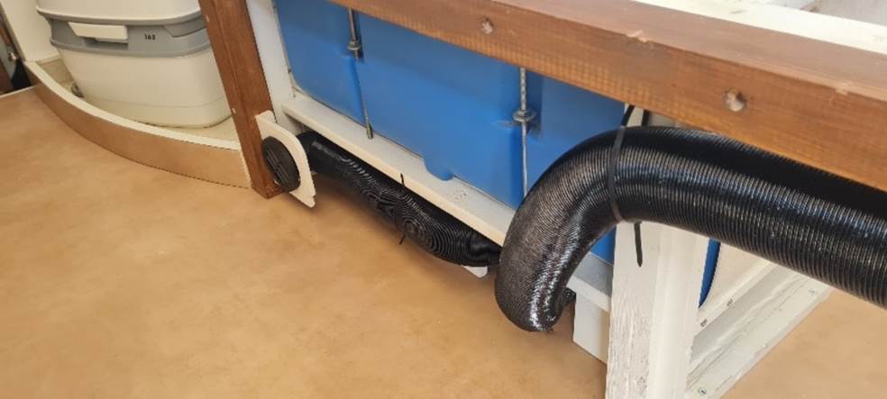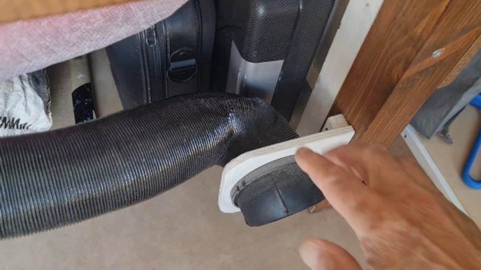 Θα μπορούσα να κάνω το πορτάκι συρόμενο στο πλάι, αλλά με όλη αυτήν την χρήση των δύο ετών διαπίστωσα ότι το αερόθερμο μπορούσε να στεγνώσει τον χώρο σε ελάχιστο χρόνο, χωρίς να τραβάω αέρα από μέσα (ανακύκλωση). Έτσι, αποφάσισα να το καταργήσω.