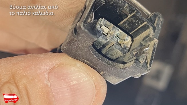Σε ότι αφορά στο ηλεκτρικό κύκλωμα του αερόθερμου, διαπίστωσα ότι το βύσμα της αντλίας καυσίμου είχε διαβρωθεί τόσο που σύντομα θα έβγαζε βλάβη.