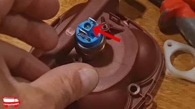 Εδώ ο πιεσοστάτης επάνω στην κεφαλή με τις μεμβράνες της αντλίας: