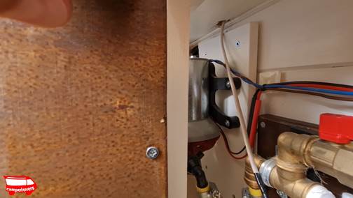 Η αντλία νερού είναι η: Aqua F της Fiamma, η έκδοση με 10 litra /λεπτό και πίεση στο 1,5 bar περίπου. Με 50 db θορύβου να είναι από τις πιο ήσυχες, την ποσότητα, αλλά και την πίεση ακριβώς αυτή που ήθελα για να δουλεύει σωστά το ταχυθερμοσίφωνό μου, ήταν οι λόγοι που την διάλεξα παρόλο ότι ήταν από τις ακριβότερες που έβρισκα τότε (2021).